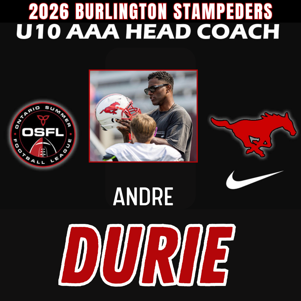 Coach Durie is back for Spring 2026! After leading our U10 AAA Stampeders through the OFFL season, Andre is returning to BMFA as Head Coach! A former CFL pro, Andre brings experience, energy, and a true passion for helping young players. U10 — 2016, 2017, 2018 (under age).