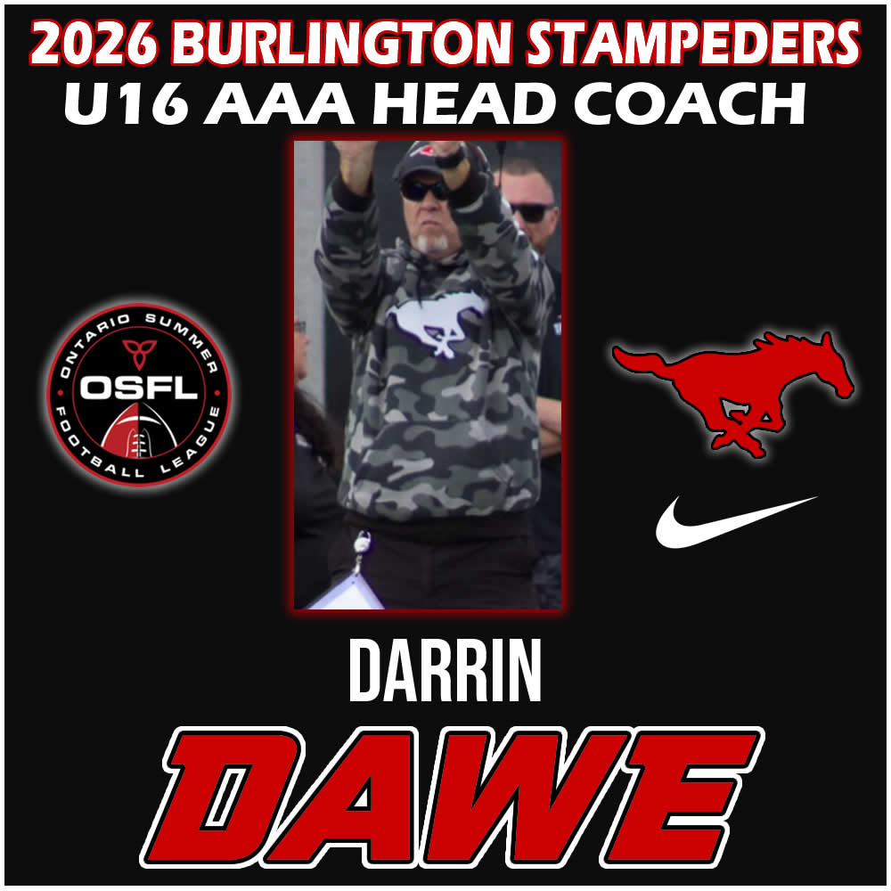 BMFA is excited to announce Darrin Dawe will take the reins of our U16 AAA Stampeders program for 2026. Coach Dawe is looking to build his roster with new and returning Stampeders who will get Burlington back to an OSFL Championship this coming July. U16 Jr. Varsity—2010, 2011.