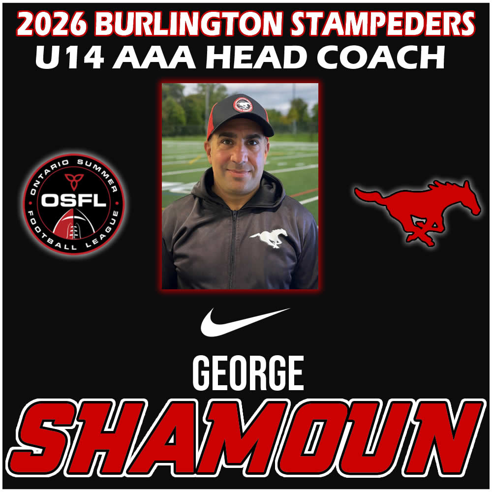 Coach Shamoun is back and ready to lead our U14 Stampeders to an OSFL Championship! A long-time BMFA coach, George has guided players at every level and brings technical skill, dedication, and a love for helping young athletes grow. With his staff, he’s focused on building a talented, confident, and unstoppable team for the 2026 OSFL season. U14 – 2012, 2013.